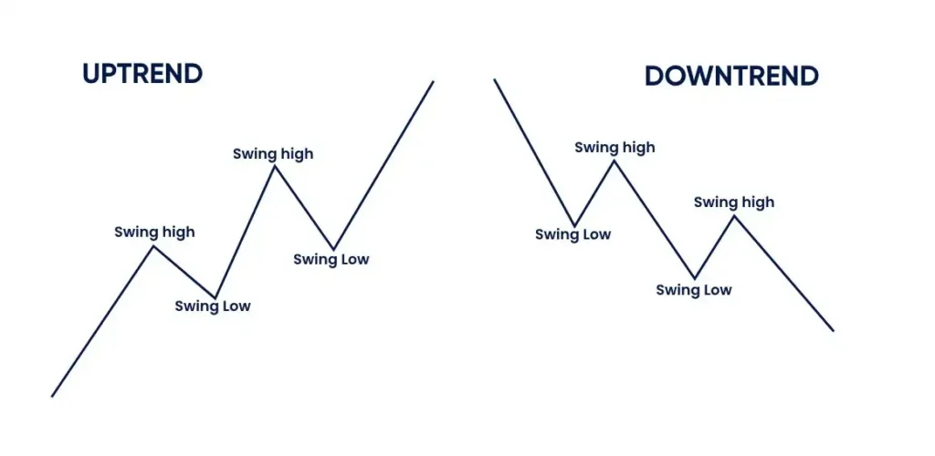 Dấu hiệu căn bản là chuỗi đỉnh sau thấp hơn đỉnh trước và đáy sau thấp hơn đáy trước. Mỗi lần bật lên đều không vượt nổi đỉnh gần nhất. Điều này cho thấy người mua yếu thế, còn người bán kiểm soát nhịp rơi.