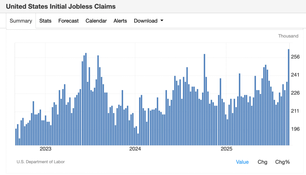 Thị trường lao động rạn nứt, dữ liệu điều chỉnh cho thấy Mỹ tạo ít hơn gần một triệu việc làm trong năm kết thúc tháng ba, báo cáo tháng tám chỉ thêm 22 nghìn việc làm, tỷ lệ thất nghiệp lên 4,3 phần trăm, đơn xin trợ cấp thất nghiệp lần đầu tăng 27 nghìn lên 263 nghìn, mức cao nhất từ tháng mười năm 2021, các con số này củng cố kỳ vọng nới lỏng chính sách
