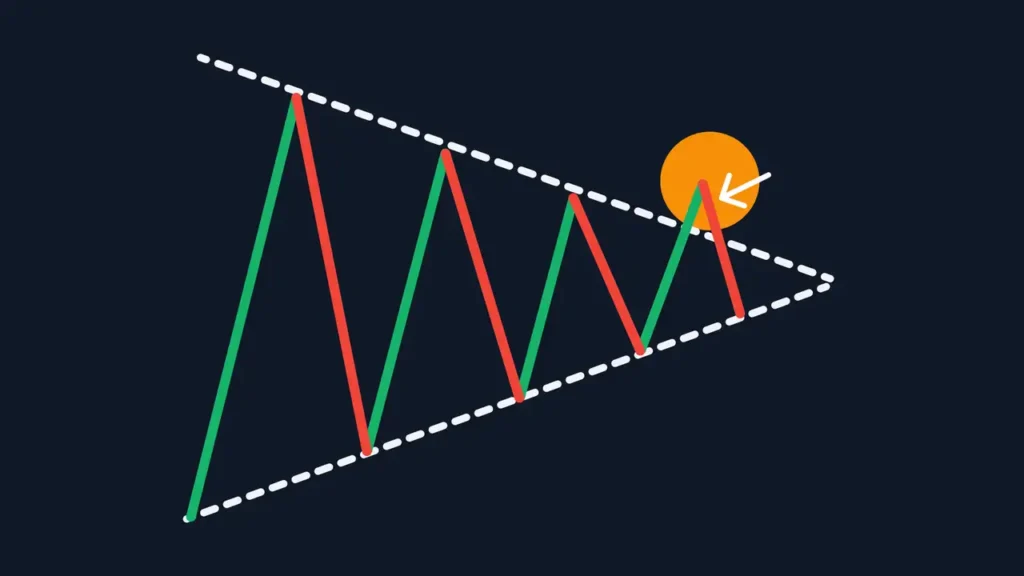 Giá đi ngang sát đỉnh cũ nhưng nền tích lũy khá lỏng. Một nến xanh dài bất ngờ vượt đỉnh, râu trên cắm sâu ra ngoài, khối lượng chỉ nhích nhẹ so với trước. Khi nến đóng cửa, giá đã lùi xuống dưới đỉnh cũ. Vài nến tiếp theo rơi về vùng đi ngang ban đầu và đứng lại ở giữa vùng. Người mua đuổi ở trên bị kẹp, còn người bán chờ sẵn ở kháng cự có thanh khoản để vào vị thế thuận lợi. Trong bức tranh này, cú vượt không có hỗ trợ từ khối lượng và không nhận được đồng thuận từ khung lớn, nên việc kéo ngược nhanh là kết quả tự nhiên.