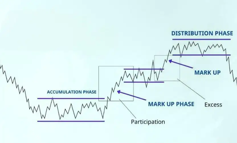 Pha tích lũy thường trầm lắng, biên độ nhỏ; pha chạy xu hướng cho thấy giá bứt ra khỏi vùng đi ngang với những nhịp kéo–nghỉ nhịp nhàng; pha phân phối xuất hiện khi dòng tiền lớn giảm dần mua ròng và bắt đầu bán ra cho đám đông đến muộn. Nắm được ba pha giúp bạn tránh mua đuổi ở đoạn cuối hay bán sớm khi xu hướng mới bắt đầu.