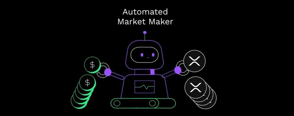AMM là bộ tạo thị trường tự động. Hệ thống định giá theo công thức giữa hai tài sản trong một bể thanh khoản. Người cung cấp thanh khoản nhận phí giao dịch thay cho vai trò đặt bảng giá. AMM không đọc sổ lệnh vì không có sổ lệnh. Tuy vậy, AMM vẫn thực hiện chức năng cốt lõi của market maker là đứng sẵn ở hai phía để người dùng có thể đổi tài sản ngay lập tức.
