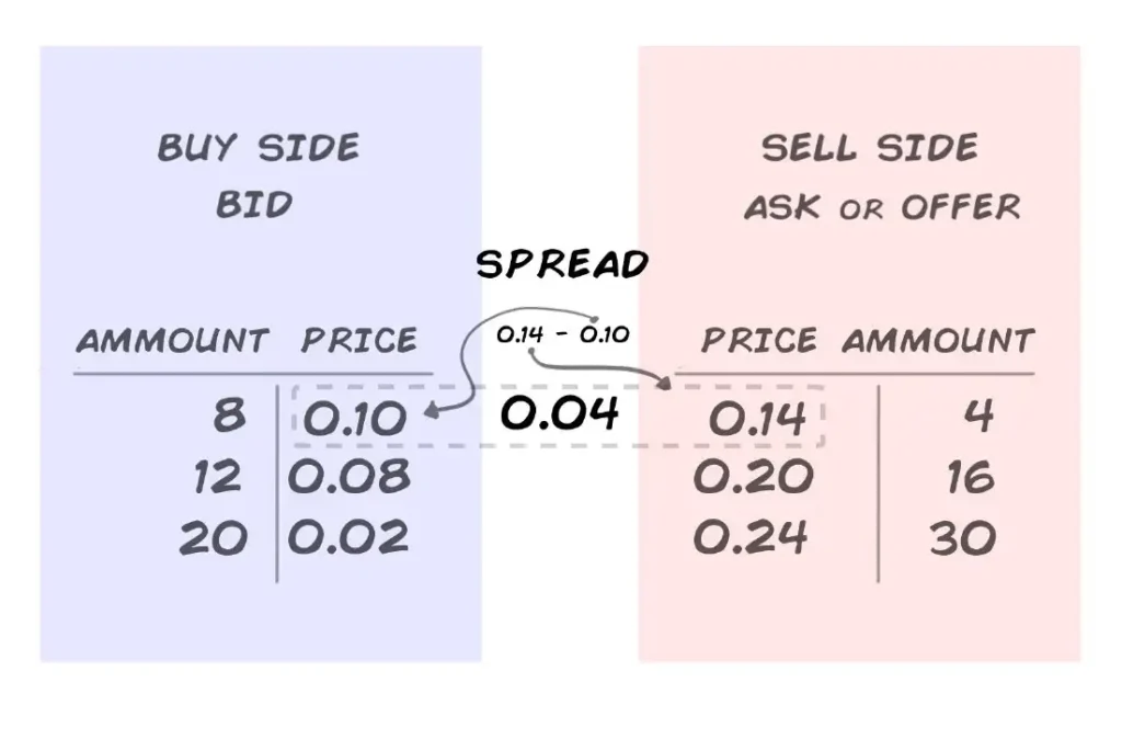 Spread là chênh lệch giữa giá bán tốt nhất (ask) và giá mua tốt nhất (bid) ở thời điểm hiện tại. Trong giao diện sàn, bạn luôn thấy hai con số đứng cạnh nhau: một là giá người bán muốn nhận, một là giá người mua sẵn sàng trả. Khoảng cách giữa hai mức đó chính là spread. Với cặp có thanh khoản dày, spread thường rất hẹp; ngược lại, ở những altcoin nhỏ thanh khoản, spread có thể rộng đến mức “vào lệnh đã lỗ” ngay lập tức.